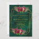 Emerald Green Pink Peony Roses Wedding Invitation