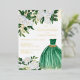 Gold Foil Emerald Green Quinceanera Invitation with gold foil lettering and watercolor illustrations of green and gold princess gown and floral arrangements of white peony flowers and greenery. Quinceañera is lettered in swirly calligraphy and the remaining wording in elegant serif typography. Please see my Emerald Greenery & White Peony collection for matching items or, message me to create the templates you need.