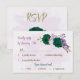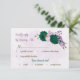 emerald green purple flowers botanical wedding RSVP card