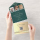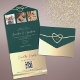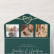 Elegant and practical, this emerald green all-in-one wedding invitation features a chic gold heart rope motif and integrated QR code for digital RSVPs. With space for three personal photos and a matching envelope design, this modern invitation simplifies your wedding planning while impressing your guests with style and ease.
