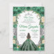 Emerald Green Quinceanera Silver Crown Glitter Invitation