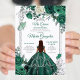 Emerald Green Quinceanera Silver Crown Glitter Invitation
