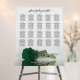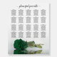 This gorgeous wedding seating chart has places for 200 guests at 20 tables - 10 seats per table. The design is simple yet elegant with a lacy script calligraphy title and a single long stemmed emerald green colored rose reflecting in a pool of water with waves and ripples. There is space for the names of the couple and the wedding date. Beautiful way to help your guests find their seats at your wedding reception.