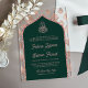Emerald Green Rose Gold Damask Arch Muslim Wedding Acrylic Invitations