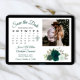 This beautiful wedding Save the Date card features a rustic boho chic design with script lettering and a cluster of hand painted watercolor roses in shades of emerald green and sage. There is a customizable calendar where you can put a heart around your wedding date with space for your photo, the couple's name & wedding location. Elegant, stylish, and chic, this card is a great way to let your friends and family know to save the date for your special day.