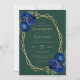 Emerald Green Royal Blue Floral QR Code Wedding Invitation