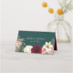 Elegant wedding place card with romantic boho florals in burgundy, ivory, and soft peach against a rich emerald green background. Perfect for fall weddings, forest themes, or elegant bohemian receptions. Fully editable and personalized with your names and date. Need help? Email bpkolman@gmail.com