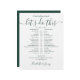 This stylish emerald green and white wedding schedule-timeline can be personalised with your wedding details in chic lettering. Designed by Thisisnotme©
