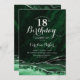 Emerald Green Silver Agate Marble 18th Birthday Invitation