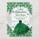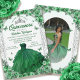 Emerald Green Silver Glitter Floral Quinceanera Invitation
