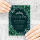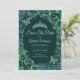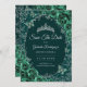 Emerald green and silver Quinceanera celebration Save The Date card. Features, script font, butterflies, watercolor roses and tiara. Perfect for an elegant princess style glam celebration. Personalize with your own details. Printed Zazzle invitations or instant download digital printable template.
