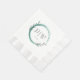 Elegant paper napkins for your wedding event that feature a simple, emerald green color wreath design with the bride and groom's initials and wedding date in stylized, gray lettering. Edit and replace initials and date with your own. Select your paper napkin color.