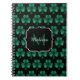 Emerald Green Sparkle Shamrock black Monogram Notebook