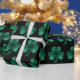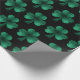 Emerald Green Sparkles Shamrock pattern black Wrapping Paper