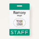Easily personalize our professional staff name badge with your company logo, employee name, or other custom text. It's pvc plastic and available with a lanyard, clip, or a retractable reel. Designed in emerald green and other colors with a modern minimalist design by MISOOK. All colors are customizable. No minimum order quantity and no setup fee.
