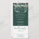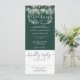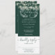 An all-in-one wedding invitation featuring pretty string lights and elegant typography on an emerald green background. The invitation includes an RSVP card that can be cut off and guest information details. Designed by Thisisnotme©