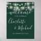 Featuring pretty string lights and signature style names, this elegant emerald green welcome sign can be personalized with your information in chic lettering. Designed by Thisisnotme©