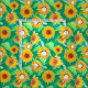 Romantic girly Sunflowers botanical emerald green watercolor painting, trendy spring floral bohemian design.