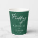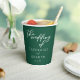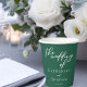 This solid emerald green wedding reception paper cup features classic white script for a couple getting married in a forest or other nature venue. Celebrate your love with this tranquil color and coordinate with our matching minimalist typography collection.