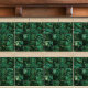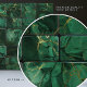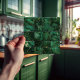 Each tile, a decorative gem in its own right, features an intricate design that mimics the natural beauty of marble and emerald gemstones. The trendy quartz color palette, predominantly in emerald green, is interspersed with hints of white, creating a captivating visual that adds an artistic touch to any room.