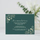 Chic vintage bohemian luxury emerald green hotel accommodation enclosure card with gilded gold flowers and modern calligraphy script. A stylish and elegant way to share important details with your guests.