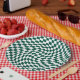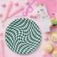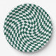 Modern bohemian dark Emerald Green color theme wedding party products. Evergreen retro trendy warped checks design, warped checkered paper plates in beautiful elegant and chic dark Emerald Green and white color.
