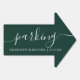 This elegant emerald green wedding parking direction sign can be personalized with your information in chic lettering. Designed by Thisisnotme©