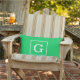Emerald Green White Framed Initial Monogram Outdoor Pillow