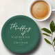 This solid emerald green round wedding plate features classic white script for a couple getting married in a forest or other nature venue. Celebrate your love with this tranquil color and coordinate this decor with our matching minimalist typography collection.