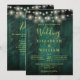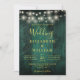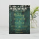 Emerald Green Wood String Lights QR Code Wedding Invitation