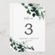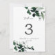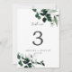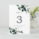 This emerald greenery 5x7" table number is perfect for a boho wedding. The elegant yet rustic design features moody dark green watercolor leaves and eucalyptus with a modern bohemian woodland feel. The card prints on the front and back (double-sided). Items are printed exactly as they appear on your screen when you add to cart, so personalize and add each table number that you need to your cart individually.