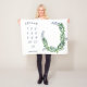 White fleece blanket with a wreath of leaves in green and blue where you lay your baby and take monthly milestone photos. Add your baby's name too!
