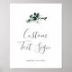 This emerald greenery cards & gifts custom text sign is perfect for a boho wedding. The elegant yet rustic design features moody dark green watercolor leaves and eucalyptus with a modern bohemian woodland feel. Customize the wording to say anything you'd like! This sign can be used for cards and gifts, guest book, wedding hashtag, favors, dessert bar -- anything! It can be used for a wedding, bridal shower, rehearsal dinner or any event. The line of text at the bottom of the sign can be personalized with the date, the names of the bride and groom, or a short message like "Thank you". If you would like multiple coordinating signs, customize and add to your cart one at a time.