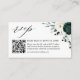 Elegant Emerald green greenery & ivory white floral botanical wedding rsvp card with qr code featuring white roses and elegant green watercolor eucalyptus leaves . Please contact me for any help in customization or if you need any other product with this design.