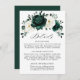 Elegant Emerald green greenery & ivory white floral botanical wedding details card featuring white roses and elegant green watercolor eucalyptus leaves . Please contact me for any help in customization or if you need any other product with this design.