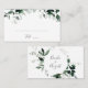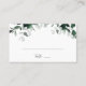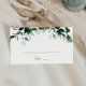 This emerald greenery flat wedding place card is perfect for a boho wedding reception. The elegant yet rustic design features moody dark green watercolor leaves and eucalyptus with a modern bohemian woodland feel. Personalize the back of the place cards with the names of the bride and groom and the date. Purchase in bulk and hand write the guest names and table numbers on the printed cards when they arrive.