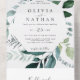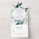Emerald Greenery Frame Leaves Wedding All In One Invitation