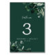 This emerald greenery green table number is perfect for a boho wedding. The elegant yet rustic design features moody dark green watercolor leaves and eucalyptus with a modern bohemian woodland feel. The card prints on the front and back (double-sided). Items are printed exactly as they appear on your screen when you add to cart, so personalize and add each table number that you need to your cart individually.