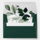 This emerald greenery green wedding invitation envelope is perfect for a boho wedding. The elegant yet rustic design features moody dark green watercolor leaves and eucalyptus with a modern bohemian woodland feel. Personalize the envelope flap with your return address. These envelopes can also be used for a bridal shower, rehearsal dinner, or any special event.