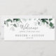 This emerald greenery hanging seating chart welcome header is perfect for a boho wedding. The elegant yet rustic design features moody dark green watercolor leaves and eucalyptus with a modern bohemian woodland feel. The card prints on the front and back (double-sided). Please check the collection for the coordinating table number seating chart cards.