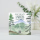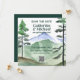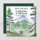 The deep forest green and emerald green colors used in the design give it a natural, rustic feel, perfect for a backwoods country wedding or a nature camping adventure. With towering mountain pine trees in the background, this design is sure to transport you and your guests to a serene forest setting.
