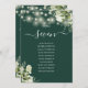 These elegant emerald green greenery floral string lights wedding table numbers can be personalized with your guests' seating plan set in chic typography. The cards are printed on the front and back (double-sided). Designed by Thisisnotme©