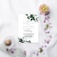 This emerald greenery silver foil wedding invitation card is perfect for a boho wedding. The elegant yet rustic design features moody dark green watercolor leaves and eucalyptus with a modern bohemian woodland feel. Featuring luxurious silver foil text.