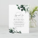 This emerald greenery sip and see invitation is perfect for a boho meet the baby party. The elegant yet rustic design features moody dark green watercolor leaves and eucalyptus with a modern bohemian woodland feel.