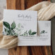This emerald greenery song request RSVP postcard is perfect for a boho wedding. The elegant yet rustic design features moody dark green watercolor leaves and eucalyptus with a modern bohemian woodland feel. Build your wedding guest list and your dance floor song list all at once! This wedding response postcard conveniently asks guests if they will be able to attend your wedding, and also what song will get them to dance.