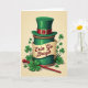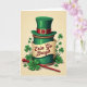 The front design shows an emerald-green top hat placed in the center on a soft, creamy beige background, like it’s waiting for someone to tip it with a friendly smile 💚. A bright red band circles the hat, held by a small golden buckle that catches the eye. Clusters of shamrocks spread around it in different sizes, some gathered close at the base as if they’re growing up to keep the hat company ☘️. A parchment-toned banner wraps around the middle of the hat, giving the scene a cozy, old-world touch. The phrase “Erin Go Bragh” sits across the banner in deep red lettering, centered and easy to read. Below the hat, a slender wand with a red tip rests on a diagonal, adding a little motion to the layout. Crisp outlines and gentle shading define the hat, shamrocks, and banner against the smooth beige space, making the red band and wand stand out. Share St. Patrick's Day sentiments with someone you care about.