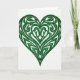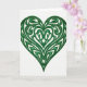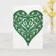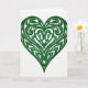 This card features an intricate green heart centered on a bright white background, with curling vine-like shapes and leaf forms woven tightly together. Deep emerald tones outline the outer edges and main curves, while lighter jade accents sit inside the pattern to give it a layered, carved look. The swirling details lean toward a Celtic-inspired style, like intertwined branches that keep meeting again, hinting at two people drawn close in friendship or romance 💚. There are no characters or scenery beyond the heart, and that open space makes the design feel calm and focused. Any greeting text is kept minimal and placed small near the bottom, set in a soft green so it doesn’t compete with the artwork ☘️. The heart’s inner flourishes create gentle shadows and depth, as if the design lifts slightly off the page. The final look is a single ornate green heart floating in the center of a wide white field, with fine curls and leaf tips repeating around its edges.