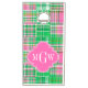 Shades of Emerald Green, Hot Pink and White Preppy Patchwork Look Madras Style Plaid Pattern Hot Pink Quatrefoil Monogram ==========