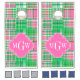 Emerald Hot Pink Preppy Patchwork Madras Monogram Cornhole Set