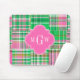 Emerald Hot Pink Preppy Patchwork Madras Monogram Mouse Pad